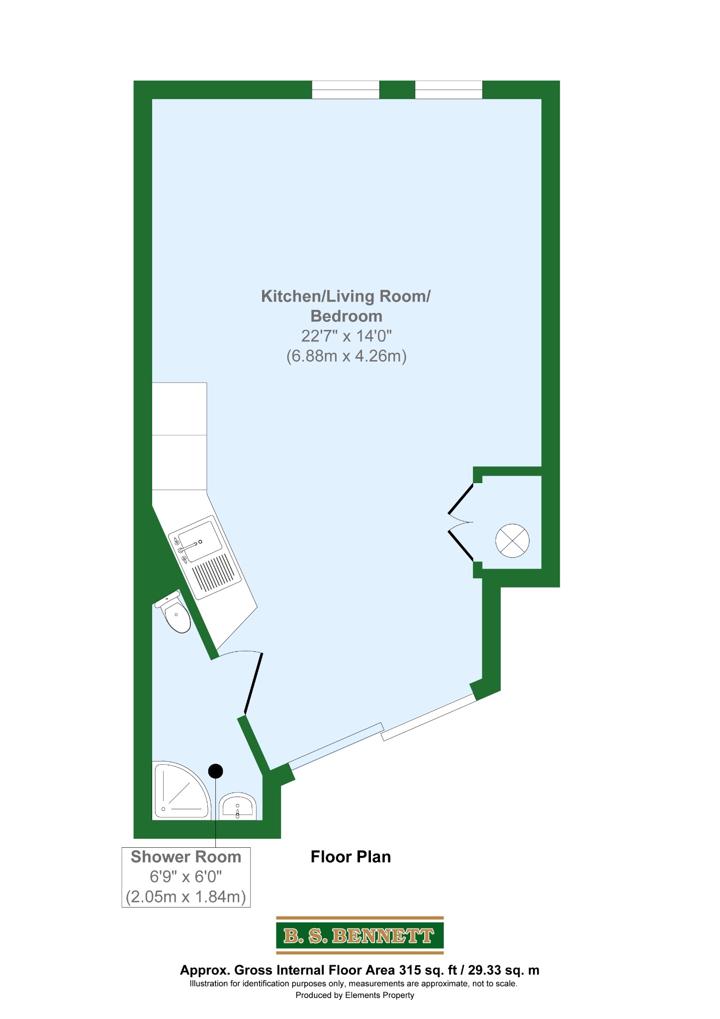 | Open plan living/kitchen/bedroom |